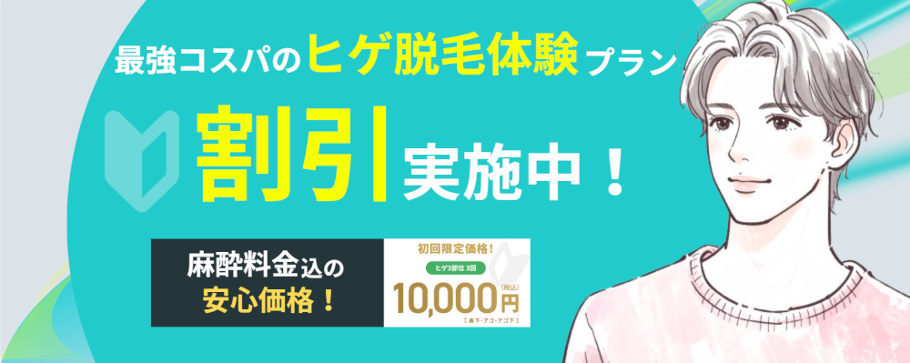 初めての方のみ「鼻下・アゴ・アゴ下」の3部位の医療脱毛を10,000円で受けることができます!